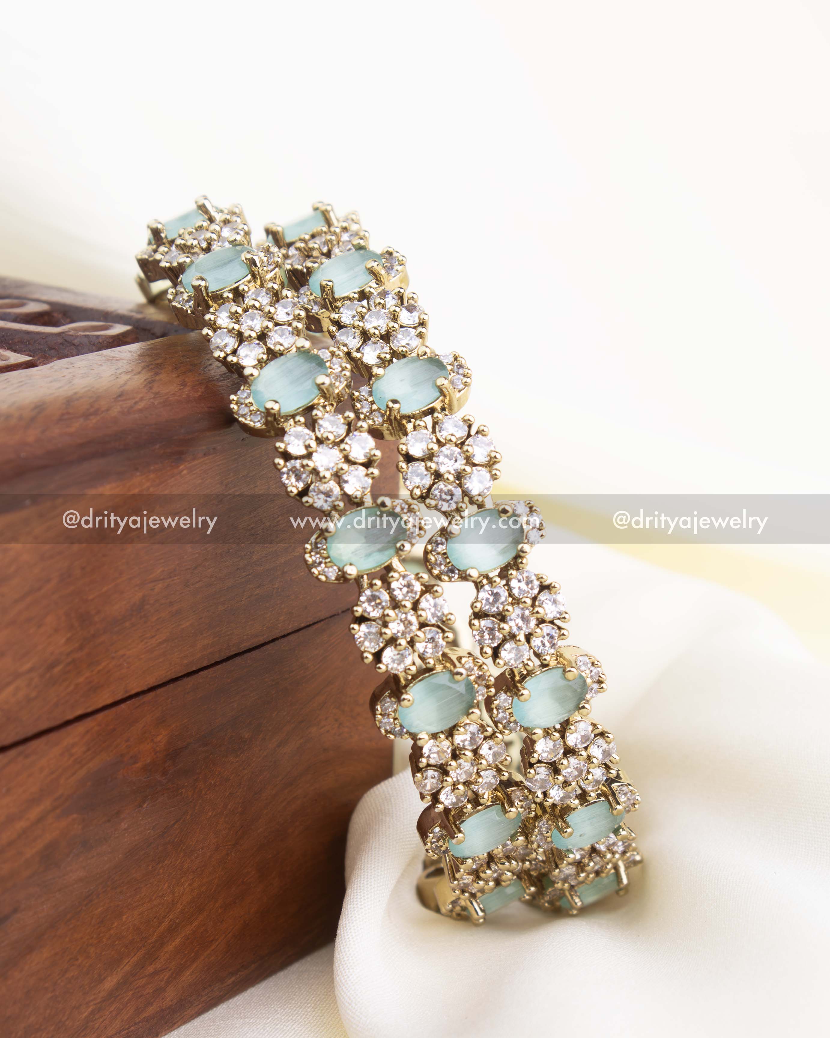 Floral Motif Premium CZ Stone Bangles - Set of 2