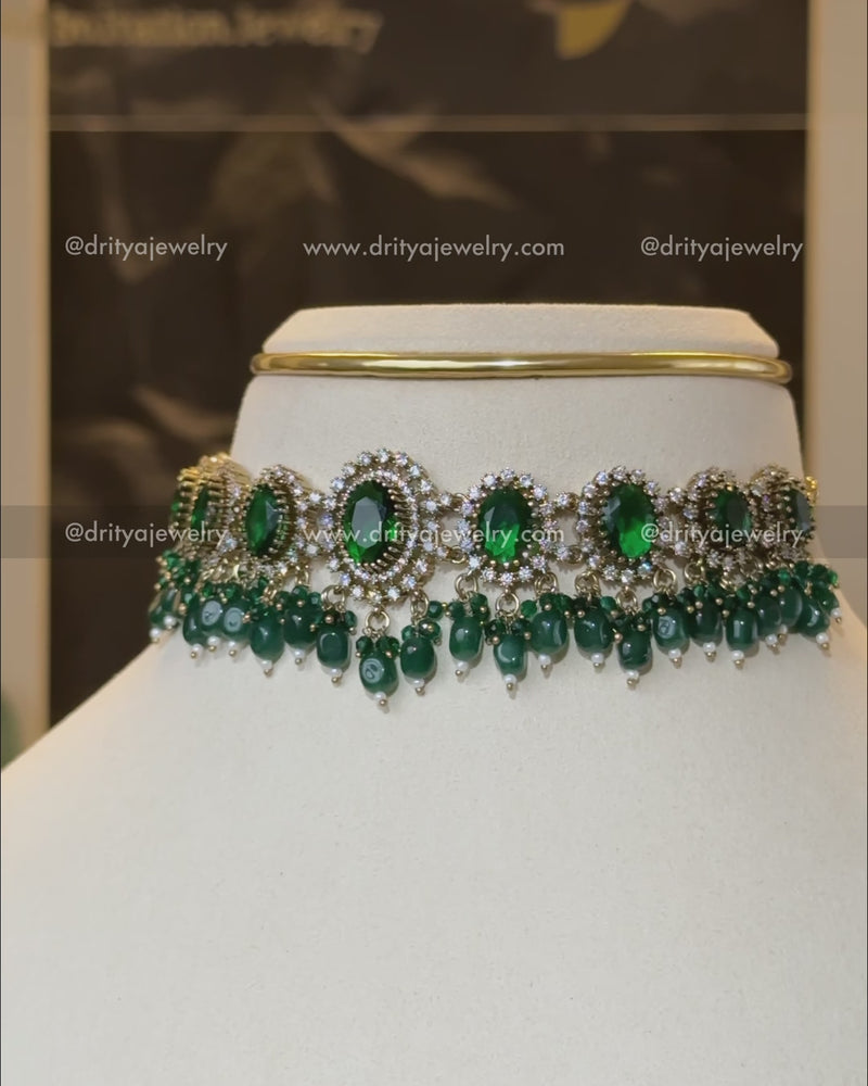 Victorian Choker Set with Emerald Green Stones